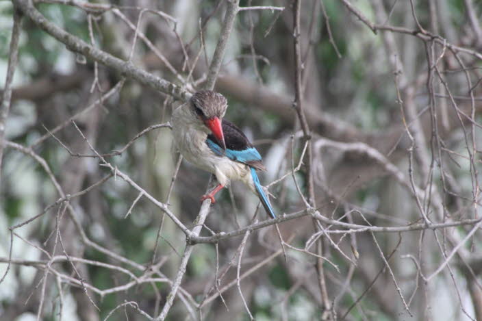 Senegalliest – Woodland kingfisher – Der etwa 22 cm große Mangrovenliest lebt in den Küstengebieten im Osten Afrikas. Sein Verbreitungsgebiet reicht von Somalia in die östliche Kapprovinz. Er lebt in Wäldern und offenem Land mit bewaldeten Flüssen. Er ist ein mittelgroßer, farbenprächtiger Eisvogel mit großem Schnabel. Erwachsene haben einen ganz roten Schnabel und einen hellgrauen Kopf. Kommt in Mangroven, Küstenwäldern, Wäldern und Gestrüpp vor. Lauter Ruf ist eine einleitende Note, gefolgt von einer Reihe von Holztrillern, die als „hüpfender Ball“ dienen. Der Waldeisvogel ist ähnlich, aber der Mangrovenliest unterscheidet sich durch seinen graueren Kopf und den komplett roten Schnabel. Jungtiere der beiden Arten sind sehr ähnlich, aber Mangrovenlieste zeigen normalerweise einen roten Schnabel mit einer schwarzen Spitze, im Gegensatz zu einem überwiegend schwarzen Schnabel in Waldgebieten.