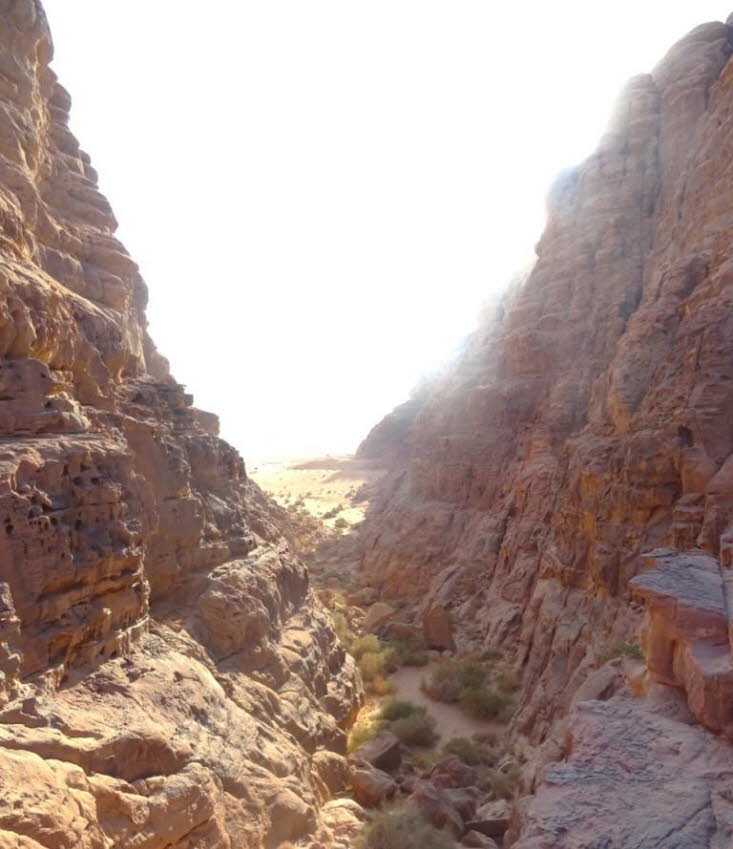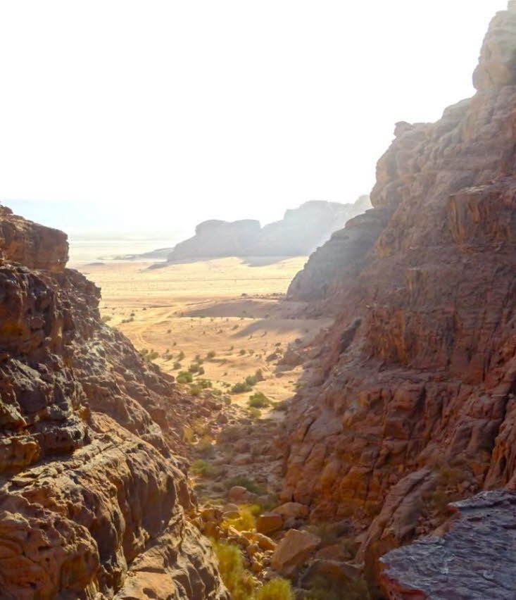 Ein Wadi ist ein ausgetrockneter Flusslauf. Er führt nur nach außergewöhnlich starken Regenfällen vorübergehend Wasser. Die Regenfälle müssen allerdings nicht unbedingt direkt am Ort des Geschehens erfolgen – der Anstieg des Wassers kann vollkommen unerwartet und ohne Vorwarnung auch dann geschehen, wenn sich mehrere Kilometer entfernt ein Gewitter ereignet hat. James Irwin, ein Astronaut der Apollo-15-Mission, zog einen Vergleich zwischen dem Wadi Rum und der Mondlandschaft und prägte den Begriff „Tal des Mondes“. Das ist gerechtfertigt, denn die Aussicht auf Wadi Rum ist spektakulär: Das Wüstental, das kraterähnliche Züge trägt, wird dominiert von Sandsteinbergen in mehreren Metern Höhe, alten Ruinen und Sanddünen in rostrot. Vor etwa 30 Millionen Jahren wurden die Gesteinsformationen aus den tieferliegenden Erdschichten hervorgebracht, teilweise regelrecht emporgeworfen. Einige Gesteinsformationen ragen wie Säulen oder Pfeiler aus der Erde heraus.